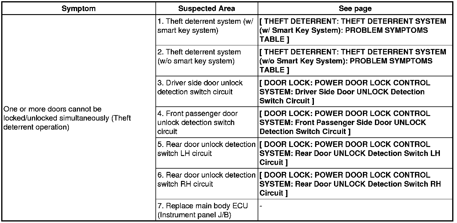 DOOR LOCK: POWER DOOR LOCK CONTROL SYSTEM: PROBLEM SYMPTOMS TABLE