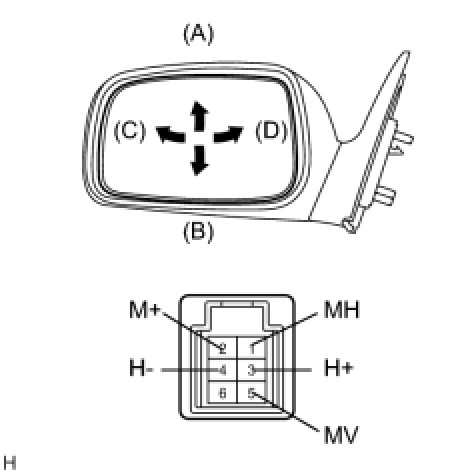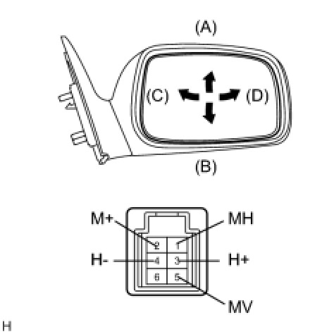 (1) Apply battery voltage and check operation of the mirror face, as shown in the table and illustration.