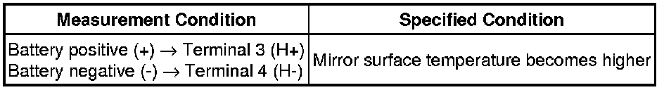 (2) Apply battery voltage and check operation of the mirror face, as shown in the table and illustration.