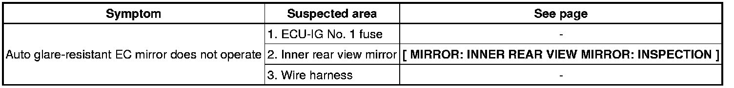 MIRROR: INNER REAR VIEW MIRROR: PROBLEM SYMPTOMS TABLE