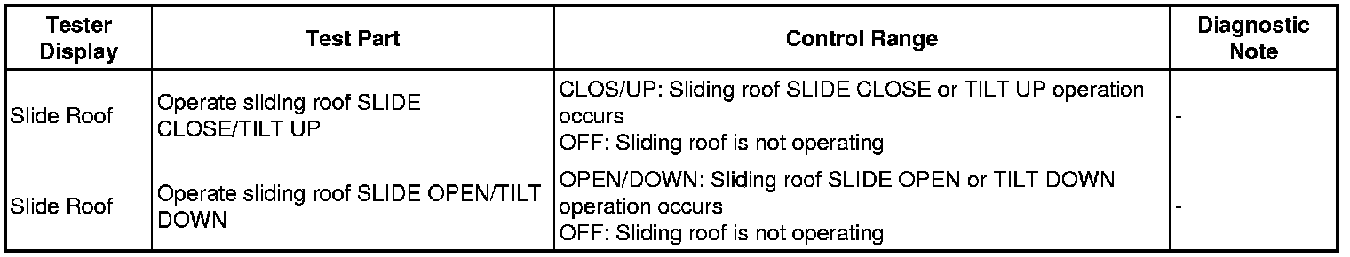 (a) Select the ACTIVE TEST, use Techstream generate a control command, and then check that the sliding roof slides open/close and tilts up/down.