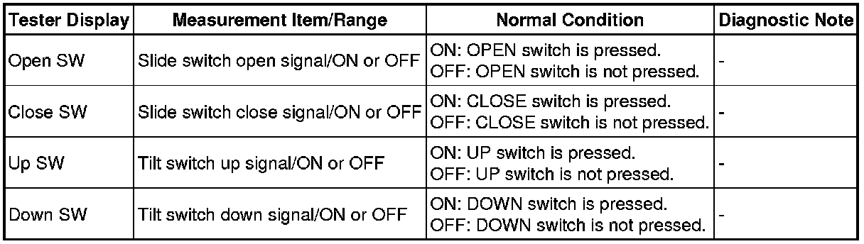 2. READ VALUE USING TECHSTREAM (SLIDING ROOF SWITCH)