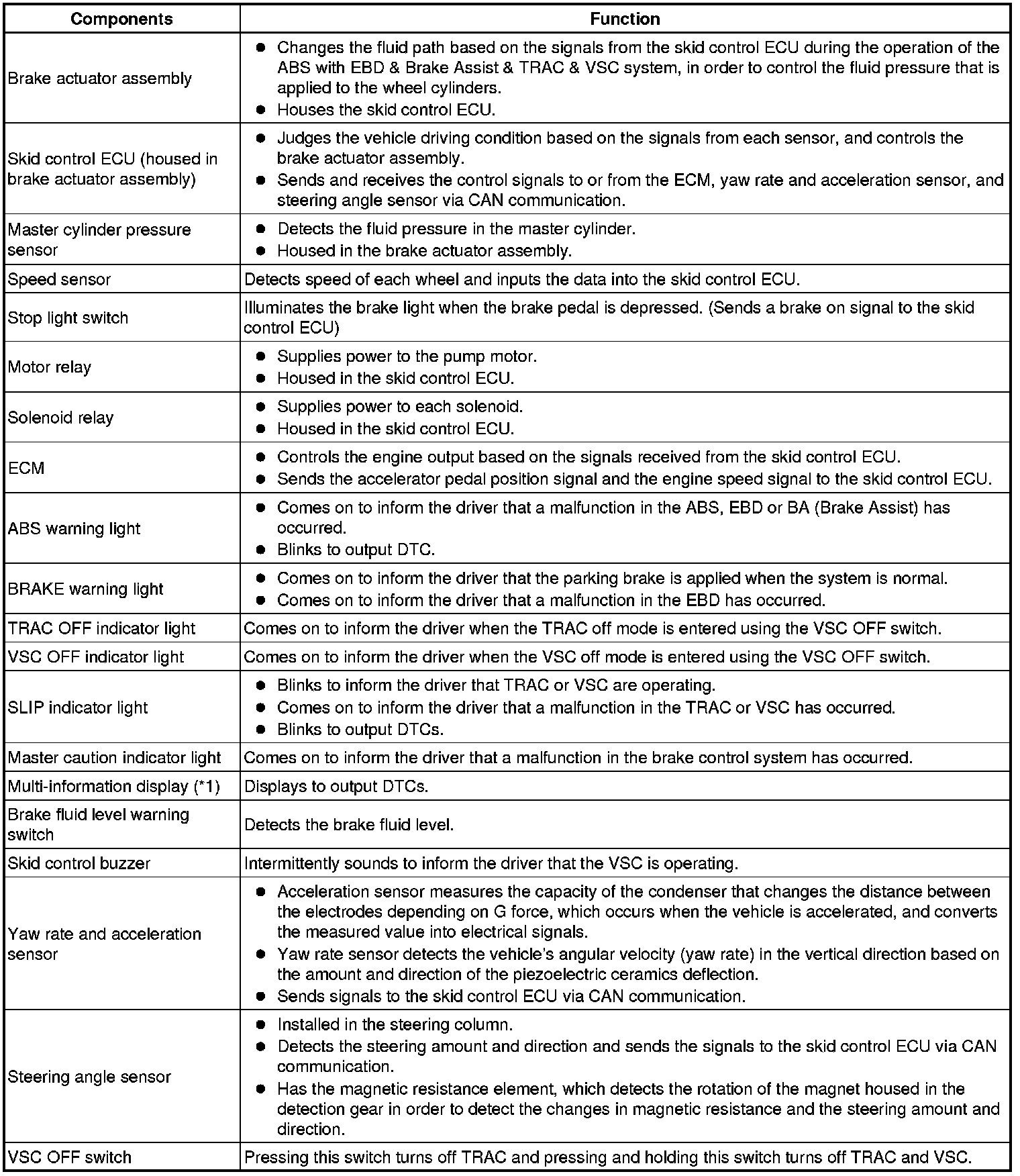 * The yaw rate sensor and acceleration sensor are combined in a single unit. This unit communicates with the skid control ECU through the CAN communication system.
