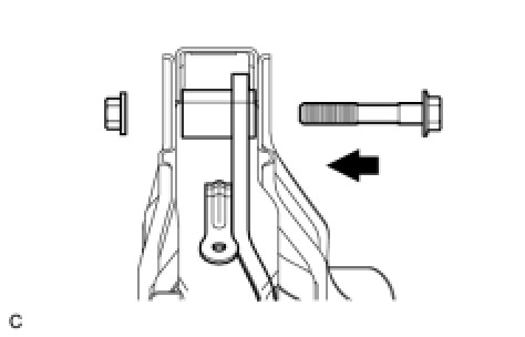 (b) Install the brake pedal sub-assembly, the 2 brake pedal bushings, and the brake pedal shaft collar to the brake pedal support assembly with the bolt and the nut as shown in the illustration.