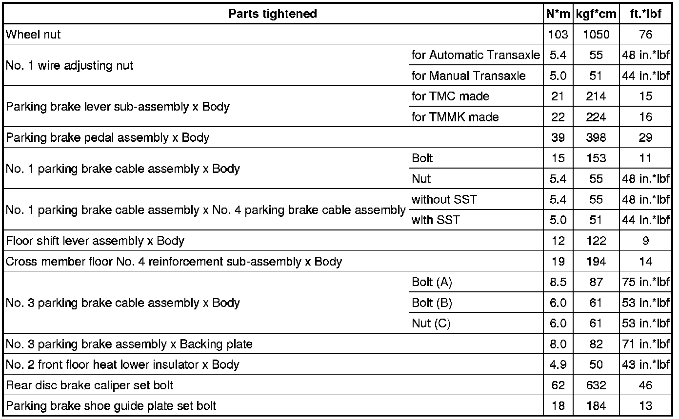 SERVICE SPECIFICATIONS: PARKING BRAKE: TORQUE SPECIFICATIONS