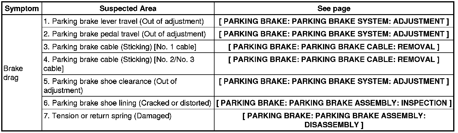 PARKING BRAKE: PARKING BRAKE SYSTEM: PROBLEM SYMPTOMS TABLE