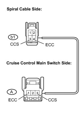 3. CHECK HARNESS AND CONNECTOR (CRUISE CONTROL MAIN SWITCH - SPIRAL CABLE)