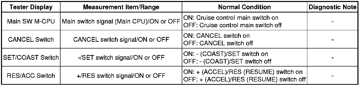 CRUISE CONTROL: CRUISE CONTROL SYSTEM: Cruise Control Switch Circuit