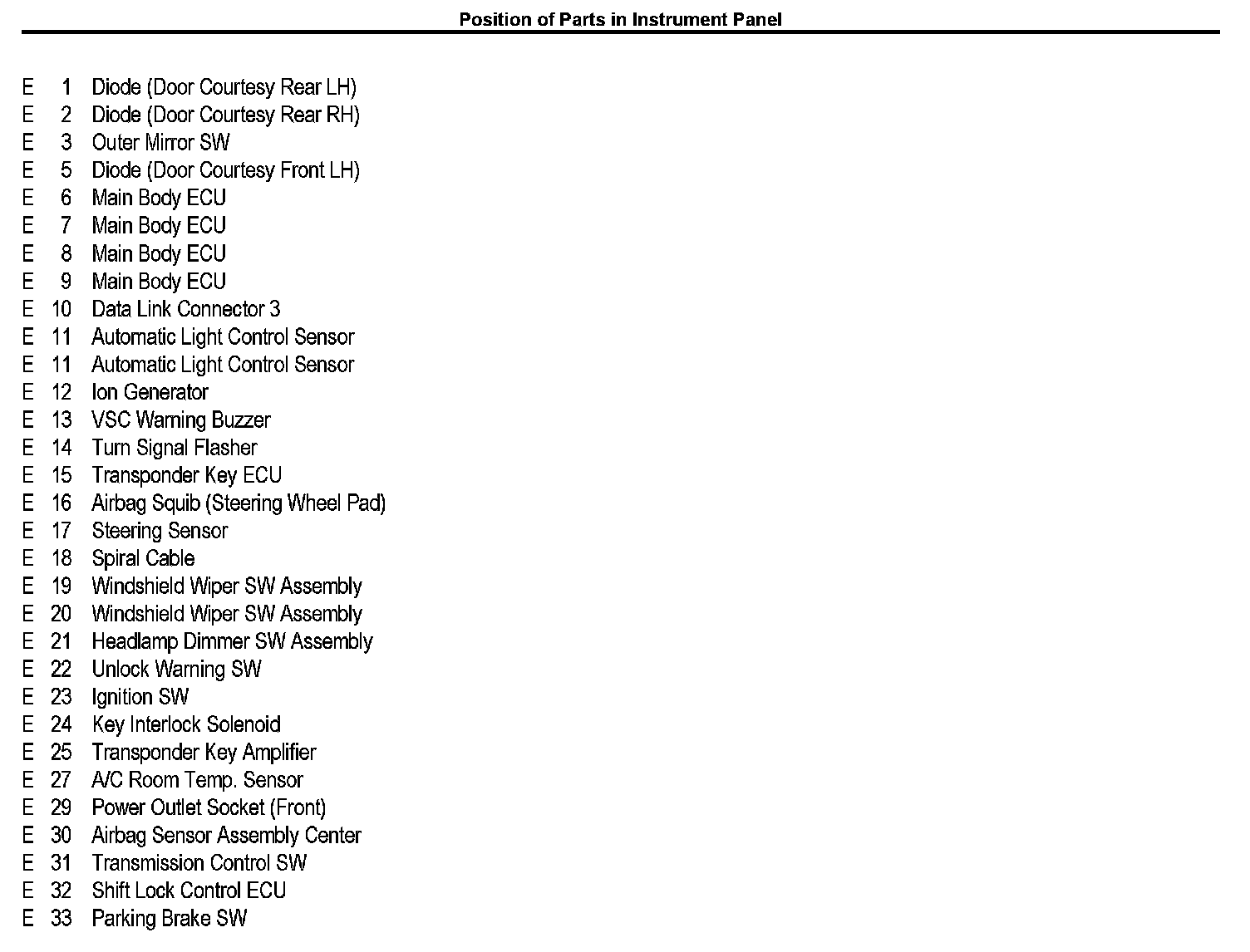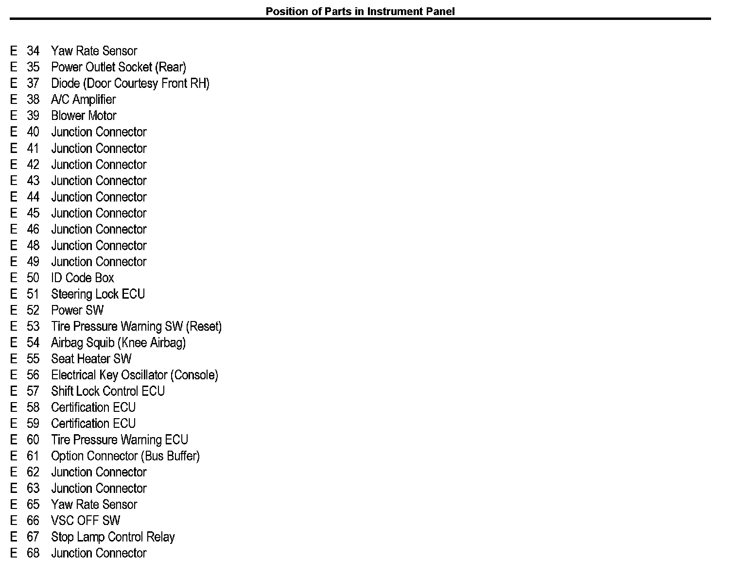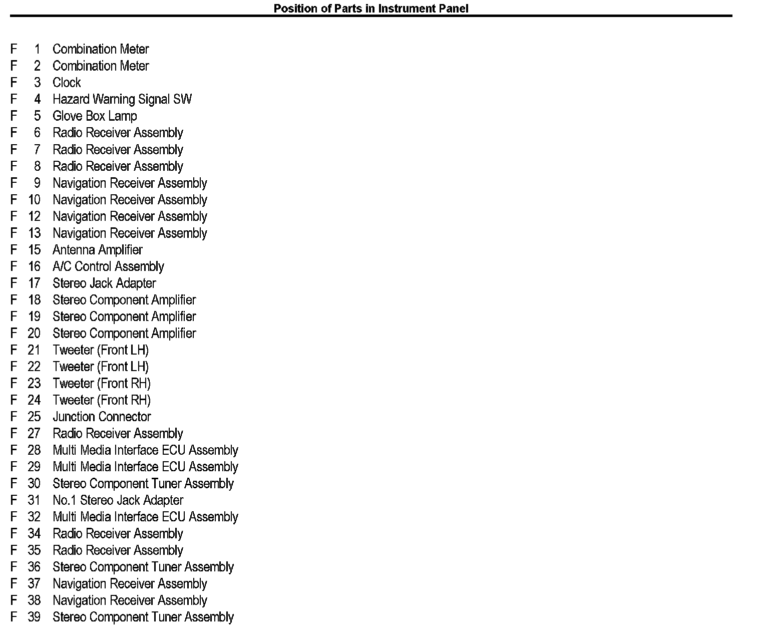 Position of Parts in Instrument Panel