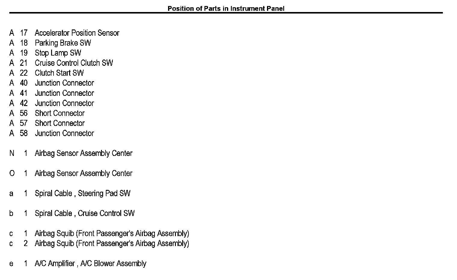 Position Of Parts In Instrument Panel: