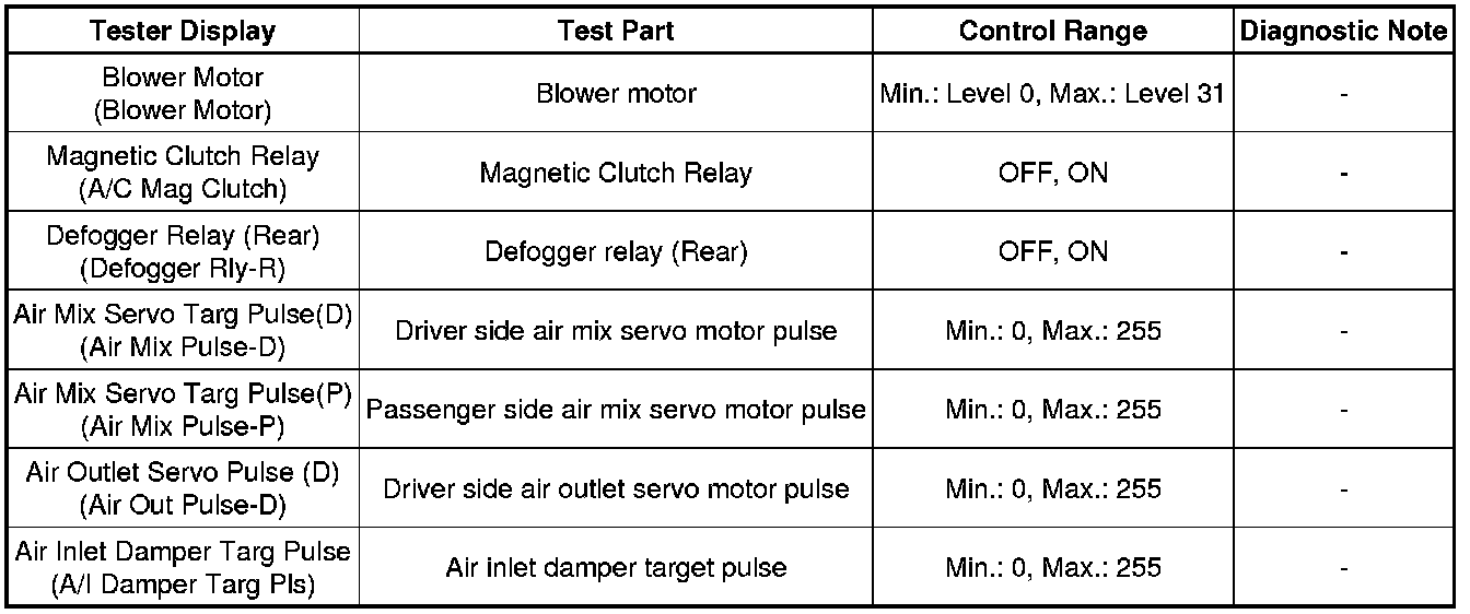 AIR CONDITIONING: AIR CONDITIONING SYSTEM: DATA LIST / ACTIVE TEST