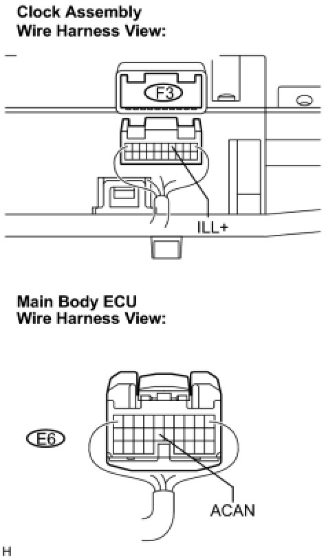 1. CHECK HARNESS AND CONNECTOR (CLOCK ASSEMBLY - MAIN BODY ECU)