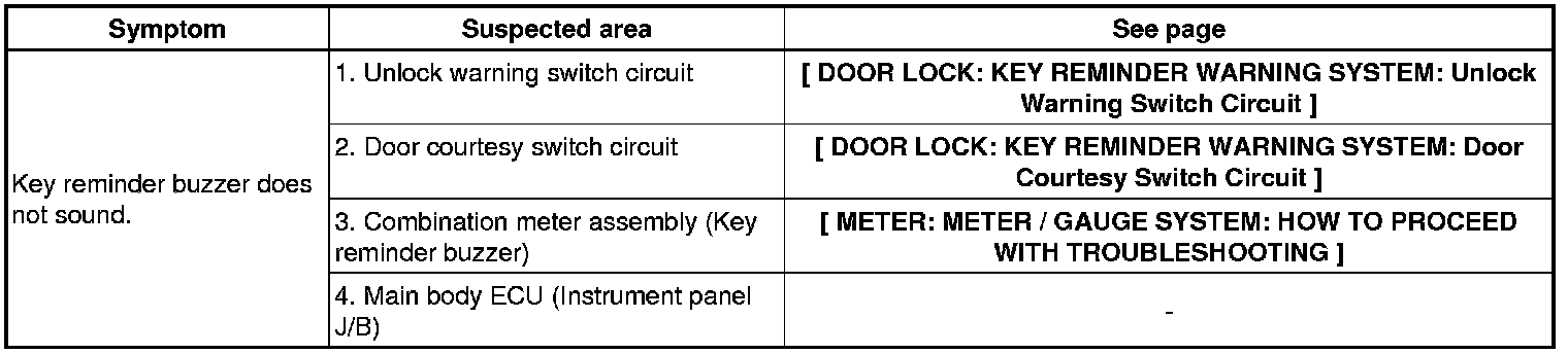 DOOR LOCK: KEY REMINDER WARNING SYSTEM: PROBLEM SYMPTOMS TABLE
