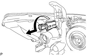 (a) Turn the No. 2 headlight bulb in the direction indicated by the arrow shown in the illustration, and remove it.