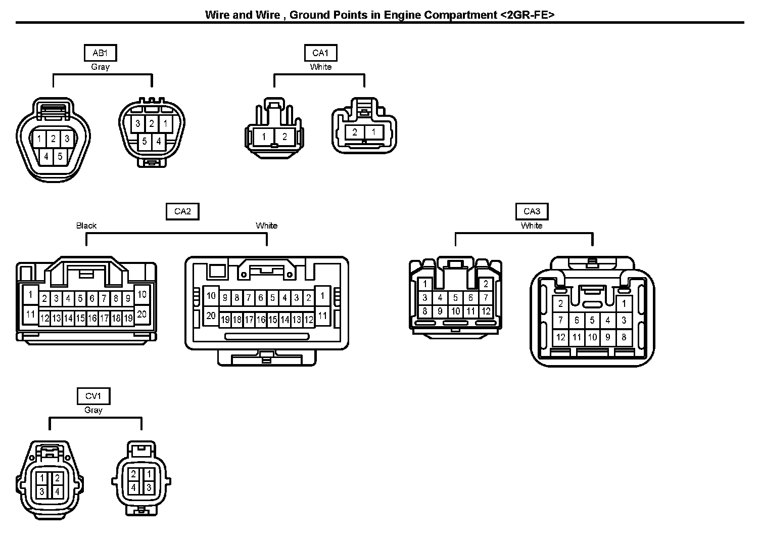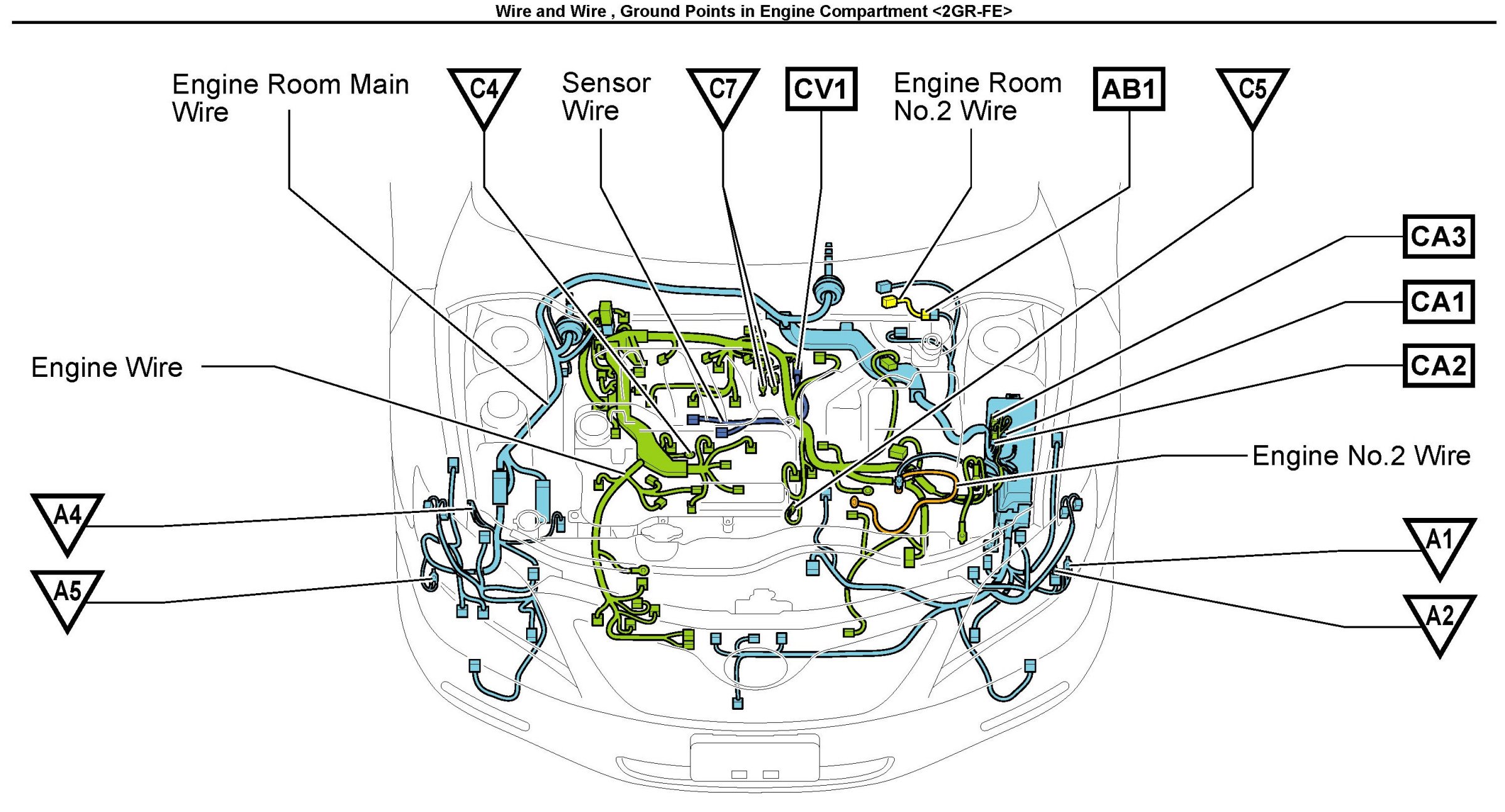 Wire and Wire, Ground Points In Engine Compartment