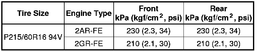 Cold Tire Inflation Pressure: