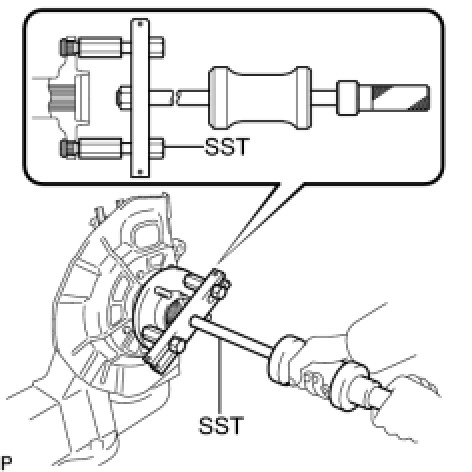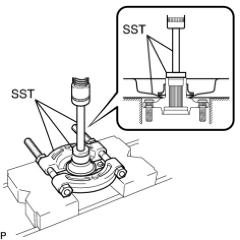 (b) Using SST and a press, press the front axle hub bearing until it contacts the SST.