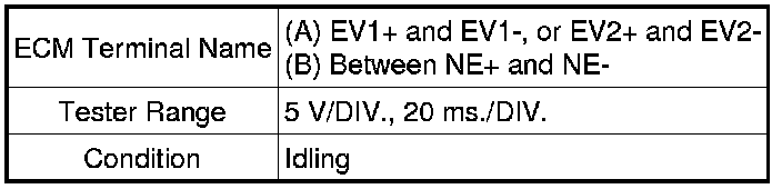 If the waveform is not similar to that shown in the illustration, check the waveform again after idling for 10 minutes or more.