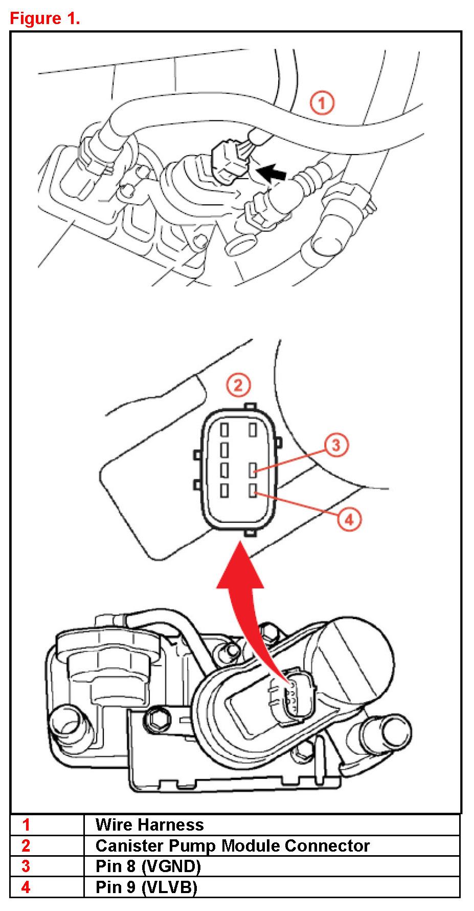 Perform the following checks with the Canister Pump Module Connector connected and back probe the pins to obtain the readings.