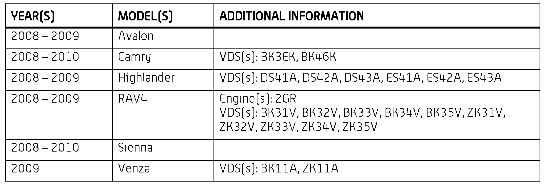 '08-'10 Applicable Toyota Models