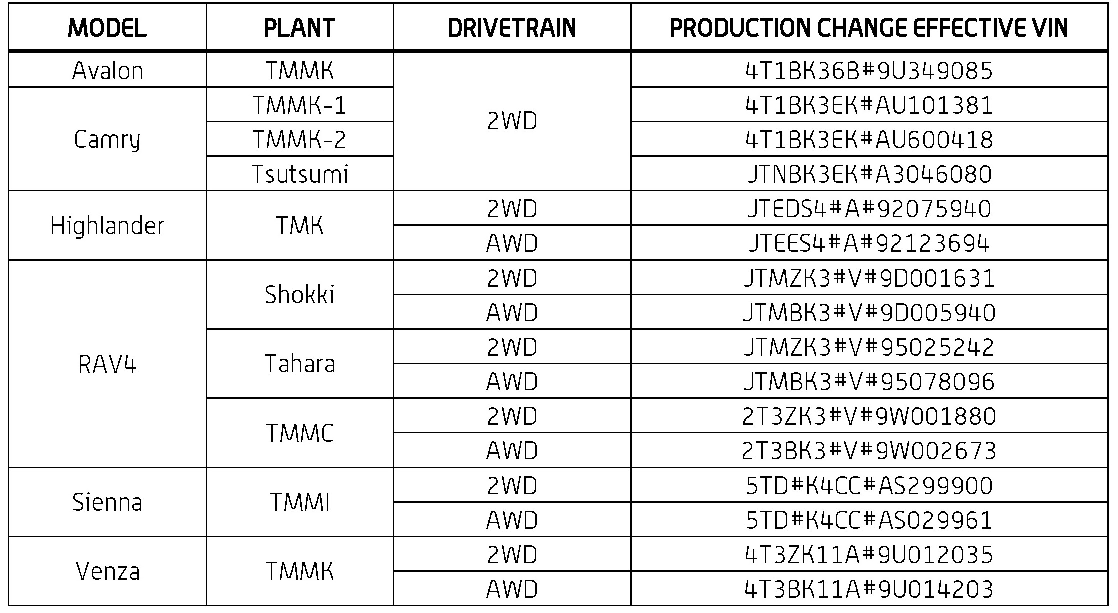 This TSB applies to vehicles produced BEFORE the Production Change Effective VIN shown.