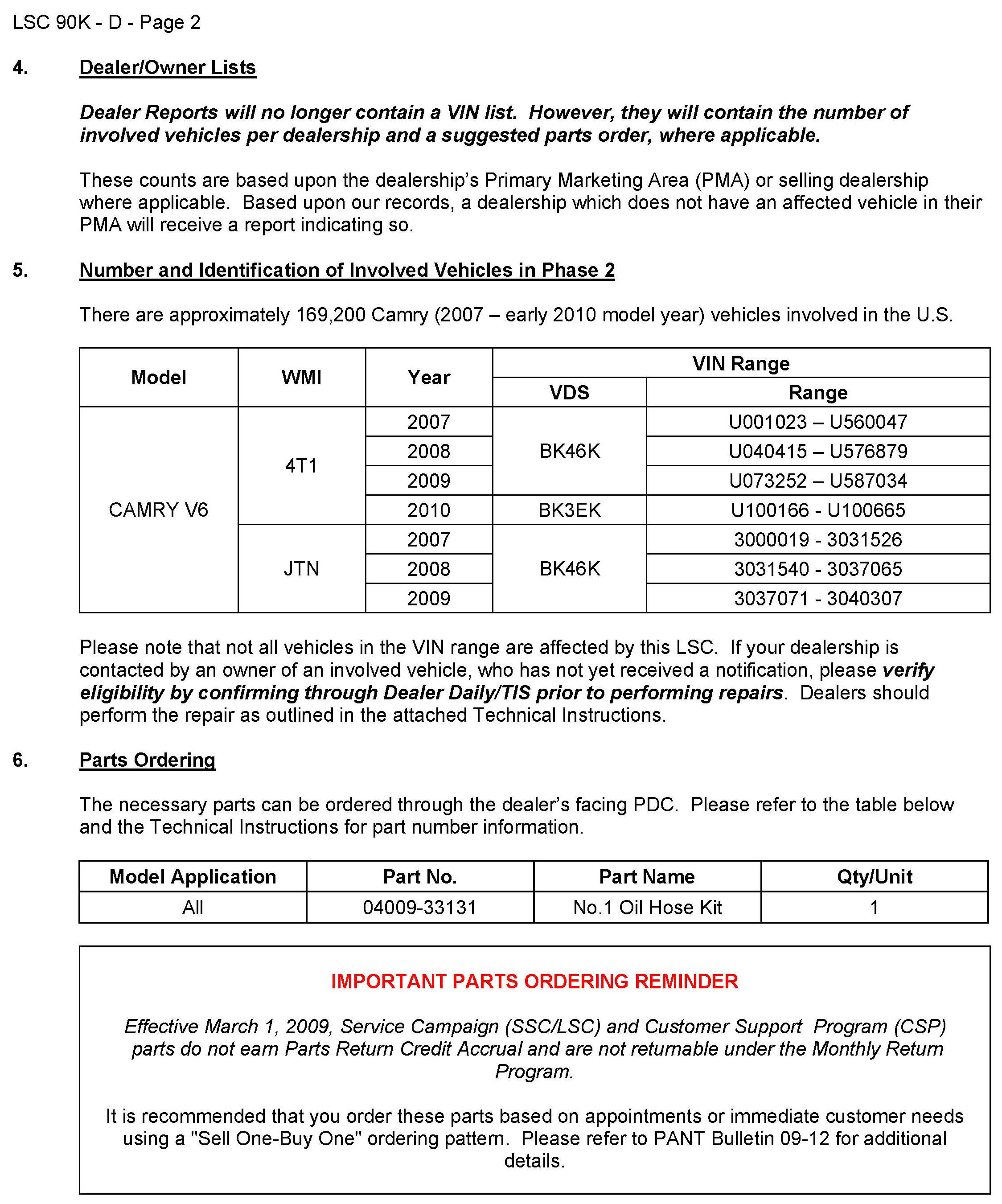 Technical Service Bulletins
