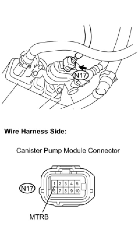 When replacing the canister, check the canister pump module interior and related pipes for water, fuel and other liquids. If liquids are present, check for disconnections and/or cracks in the following: 1) the pipe from the air inlet port to the canister pump module; 2) the canister filter; and 3) the fuel tank vent hose.