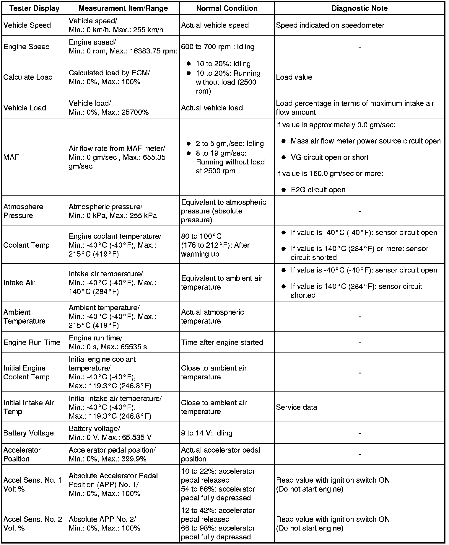 By reading the Data List displayed on the Techstream, you can check values, including those of the switches, sensors, and actuators, without removing any parts. Reading the Data List as the first step in troubleshooting is one method of shortening diagnostic time.