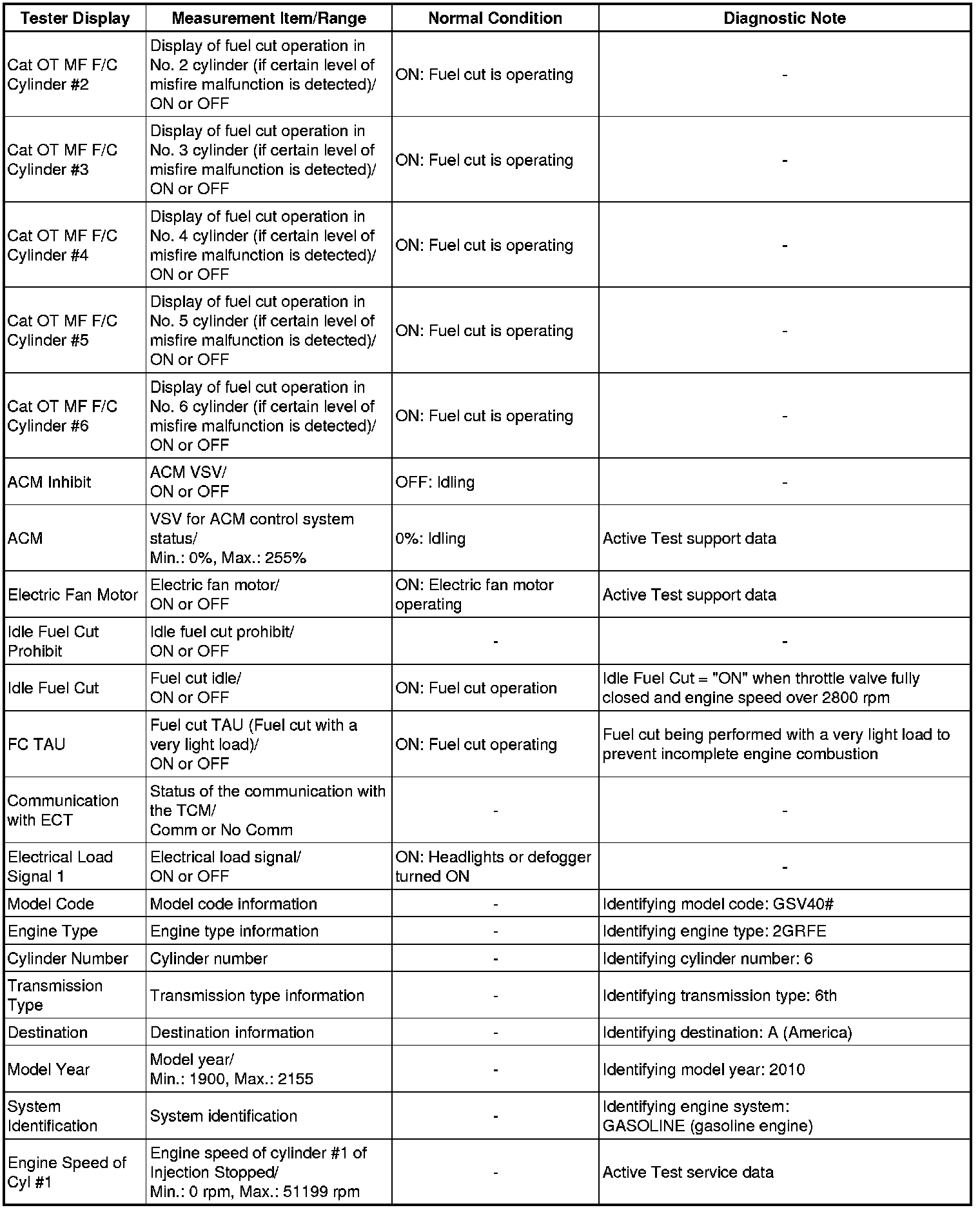 2GR-FE ENGINE CONTROL SYSTEM: SFI SYSTEM: DATA LIST / ACTIVE TEST