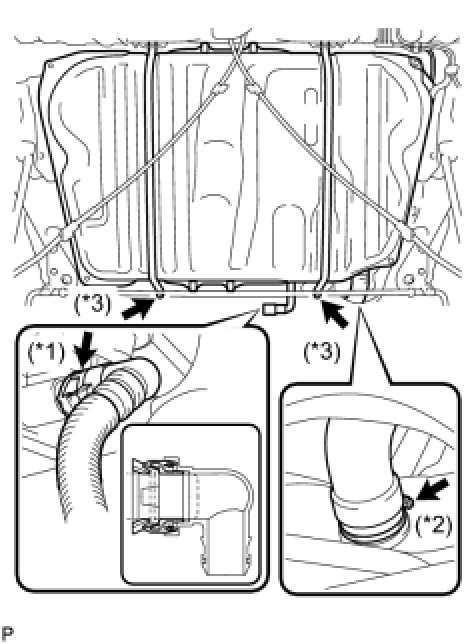 (f) Connect the fuel tank inlet pipe with the fuel filter pipe clamp. (*2)