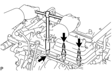 (4) Using a 16 mm (0.63 in.) plug wrench, remove the 6 spark plugs.