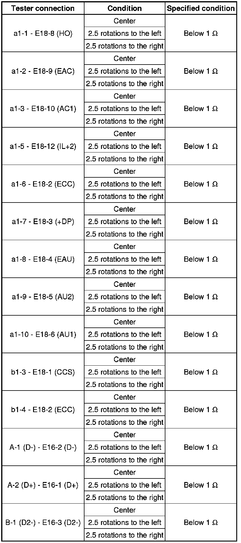 (1) Measure the resistance according to the value(s) in the table below.