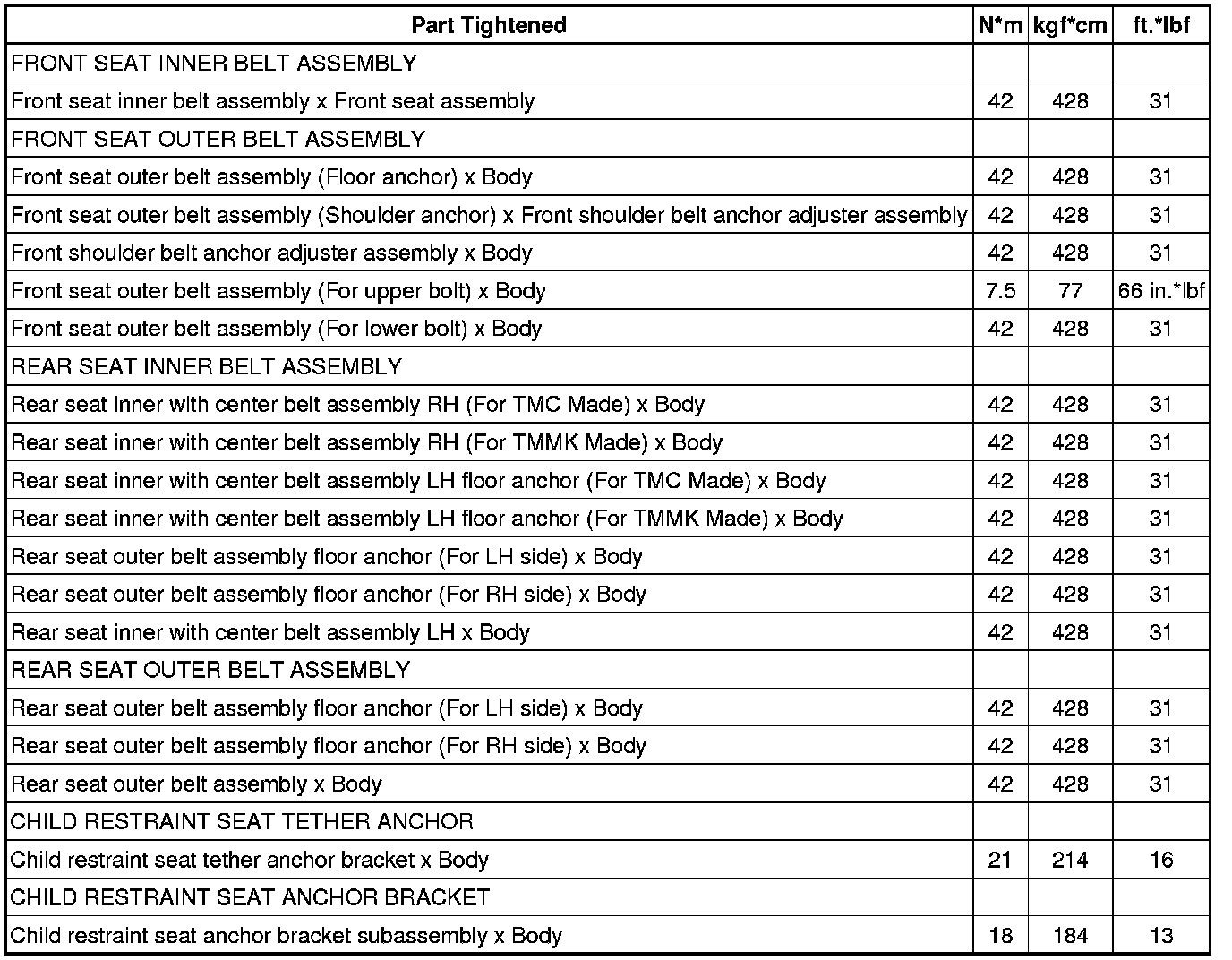 : TORQUE SPECIFICATIONS