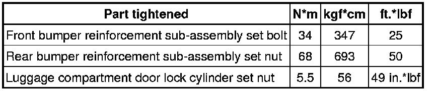 SERVICE SPECIFICATIONS: EXTERIOR: TORQUE SPECIFICATIONS