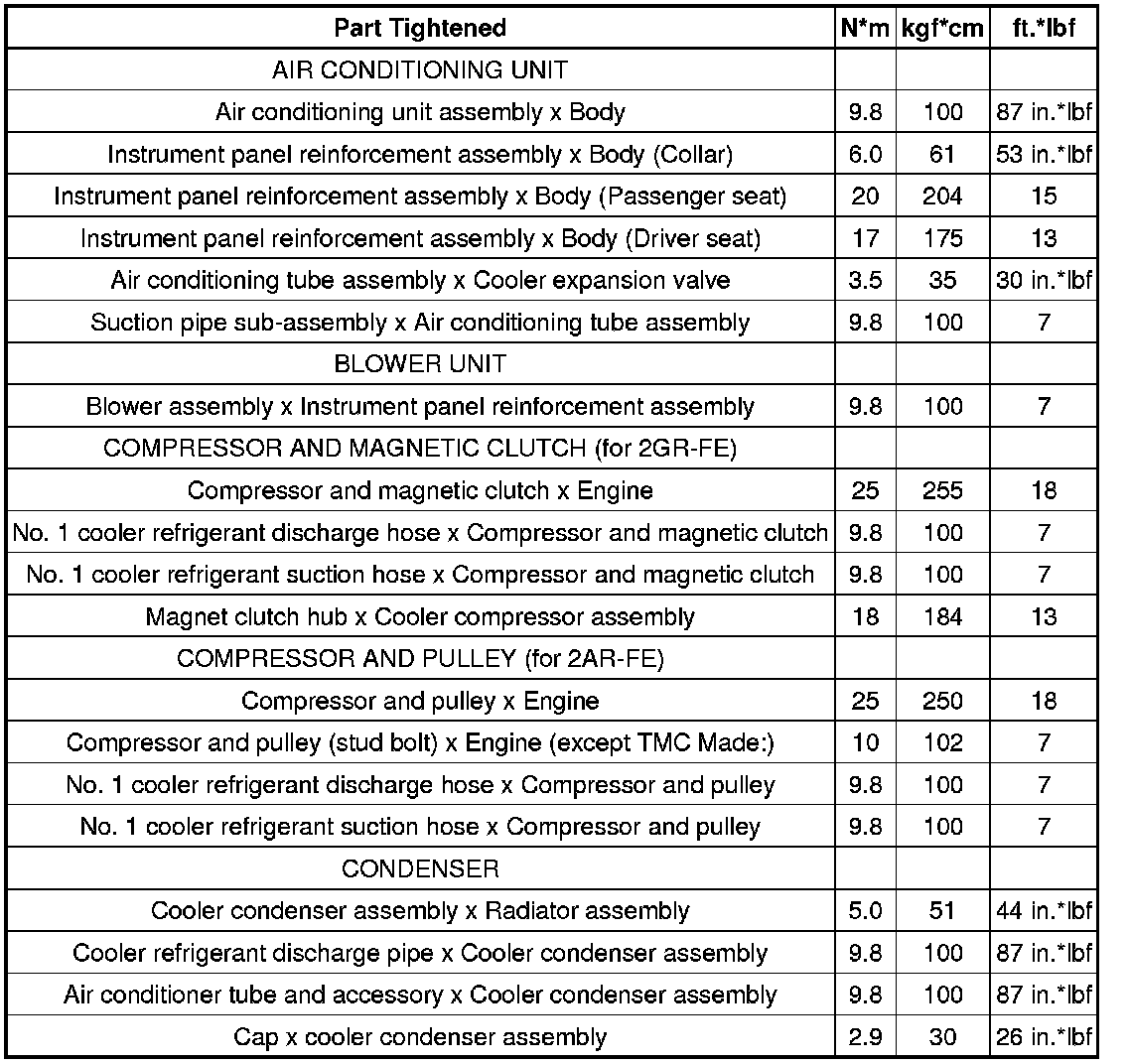 SERVICE SPECIFICATIONS: AIR CONDITIONING: TORQUE SPECIFICATIONS