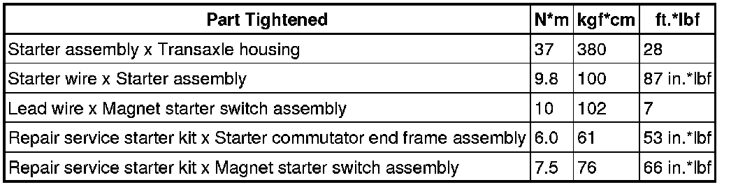 SERVICE SPECIFICATIONS: 2GR-FE STARTING: TORQUE SPECIFICATIONS
