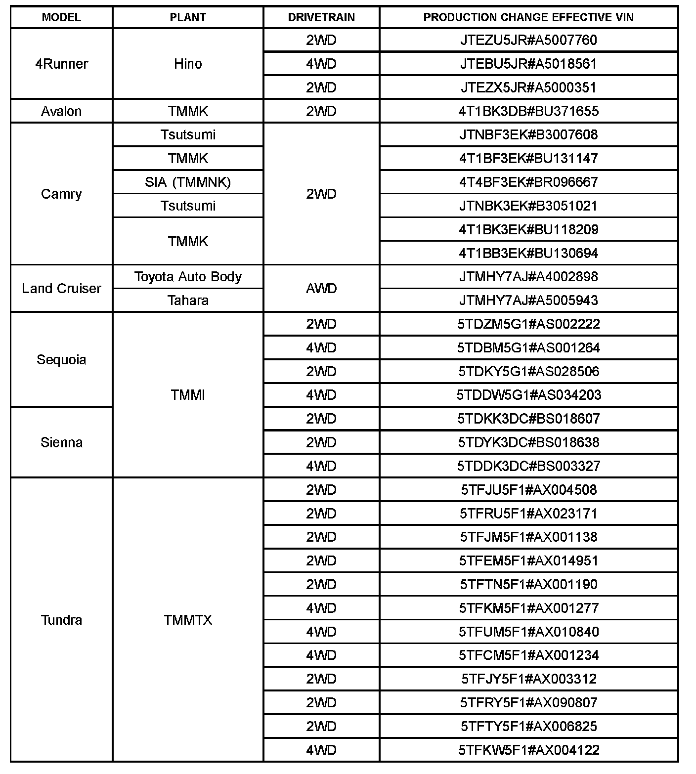 This TSB applies to vehicles produced BEFORE the Production Change Effective VINs shown.