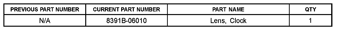 Some Camry and Camry HV vehicles may exhibit a condition where the clock lens appears foggy or clouded. A replacement lens is now available as a separate service part to address this concern.