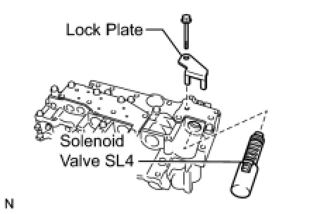 (a) Remove the bolt, lock plate and shift solenoid valve SL4 from the valve body assembly.