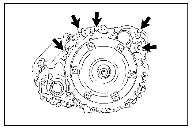 29. Remove the drive plate and 6 torque converter mounting bolts.