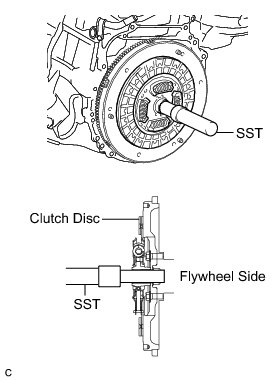 (a) Insert SST into the clutch disc assembly, then insert them both into the flywheel sub-assembly.