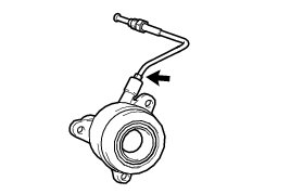 When the transaxle is removed, be sure to use a new clutch release with bearing cylinder and new installation bolts. Removal of the transaxle allows the compressed clutch release with bearing cylinder to return to its original position, and dust from the moving section could damage the seal of the clutch release with bearing cylinder, possibly causing clutch fluid leaks.