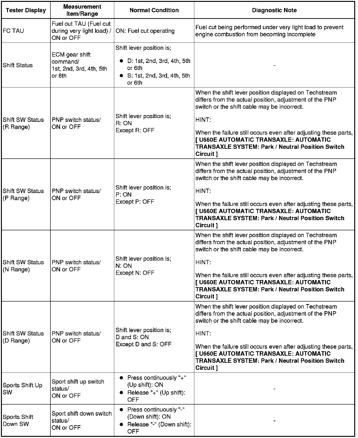 U660E AUTOMATIC TRANSAXLE: AUTOMATIC TRANSAXLE SYSTEM: DATA LIST / ACTIVE TEST