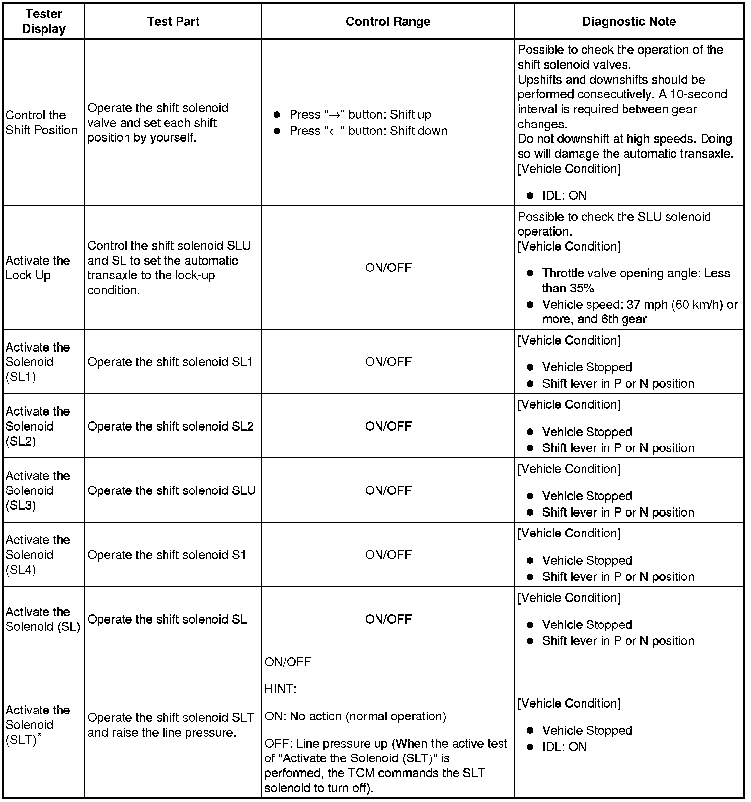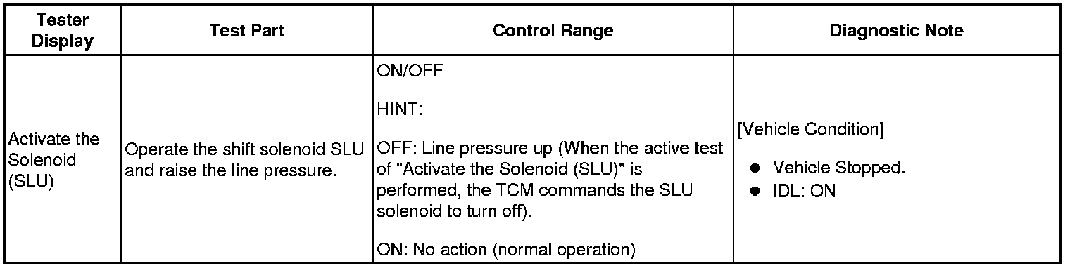 (h) *: "Activate the Solenoid (SLT)" in the Active Test is performed to check the line pressure changes by connecting the SST to the automatic transaxle. The same SST is used for the HYDRAULIC TEST Hydraulic Test as well.)