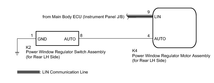 * The power window control system uses a multiplex communication system (LIN communication system). Inspect the communication function by following How to Proceed with Troubleshooting How To Proceed With Troubleshooting. Troubleshoot the power window control system after confirming that the communication system is functioning properly.