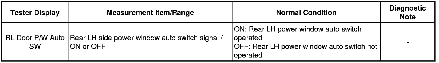 - Rear Power Window LH Auto Up / Down Function does not Operate with Rear Power Window Switch LH