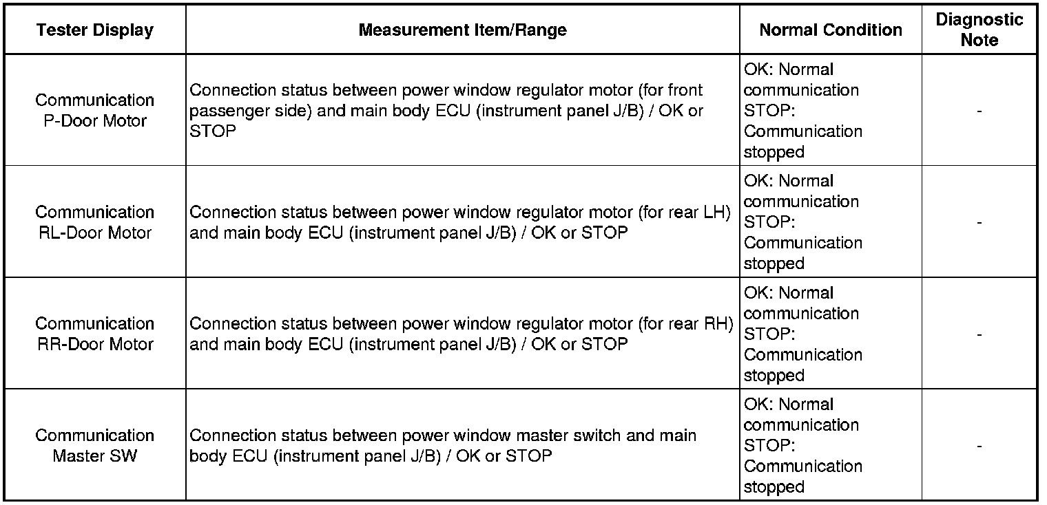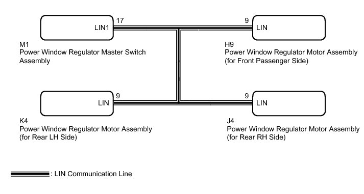 The power window control system uses a multiplex communication system (LIN communication system). Inspect the communication function by following How to Proceed with Troubleshooting How To Proceed With Troubleshooting. Troubleshoot the power window control system after confirming that the communication system is functioning properly.