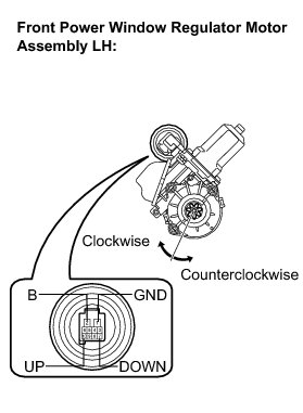 (b) If the result is not as specified, replace the front power window regulator motor assembly LH.