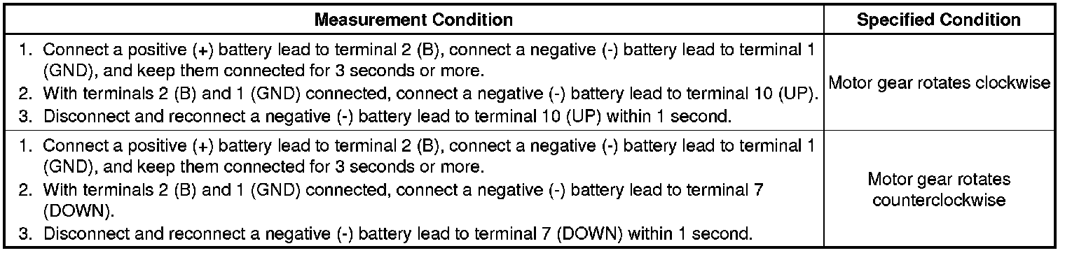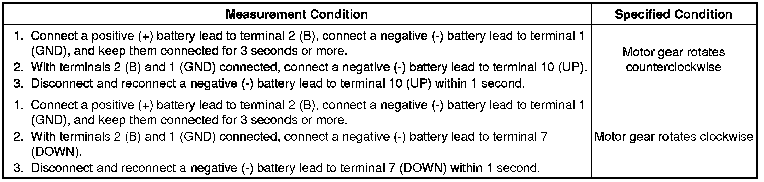 (b) Connect a ground lead to connector terminals 1 (GND) and 7 (DOWN) or 10 (UP).
