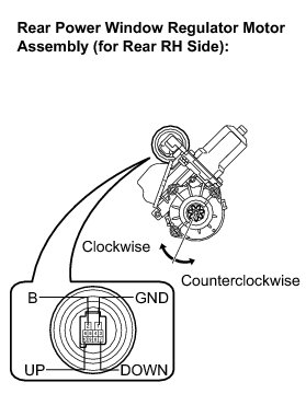 * If the result is not as specified, replace the rear power window regulator motor assembly (for rear RH side).
